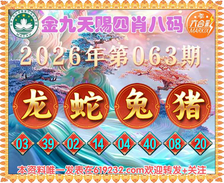 063期:【金九天赐】 🚣四肖八码🚣【龙蛇兔猪】开:00准